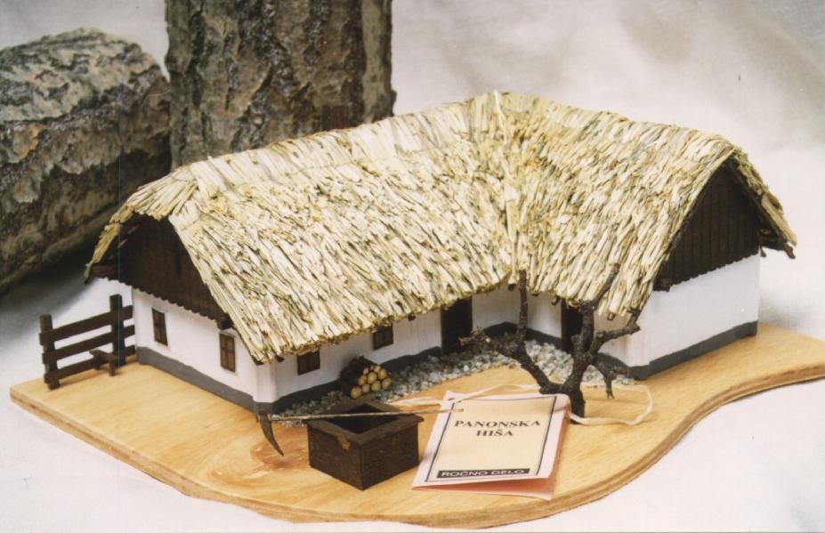 Panonski tip hie se je gradil na vzhodnem delu Slovenije, kjer je zacetek panonske nizine. V pokrajini prevladuje ravnina z ilovnato zemljo. Revni kmetje so si domove gradili iz naterijalov, ki so jih naucili ocetje in dedje, zato so bile hie preproste, majhne in poceni. Zanje je znacilno, da sta stanovanjski del in gospodarsko poslopje pod isto streho.Predstavljeni model "doma na vogal"je eden od tipov cimprane hie. Narejen je iz materialov, ki so jih uporabljali nekoc pri gradnji take hie.