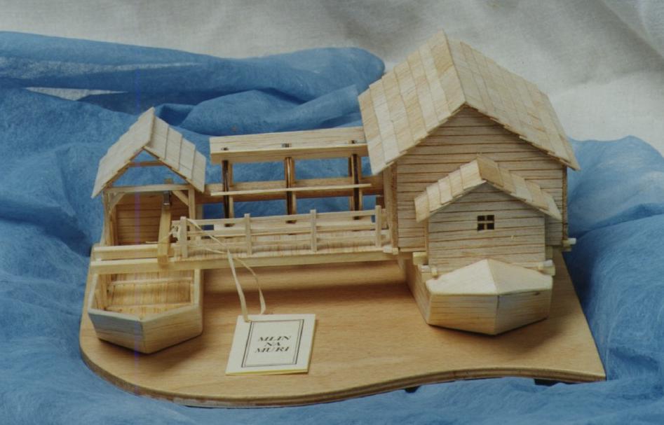 Mlin je delal tudi ponoci, zato je bila na vecjem colnu ob mlinu zgrajena e mala hika, kjer so mlinarji spali. Model je kopija ostankov mlina na Muri, ki je nekoc deloval v Pomurju.