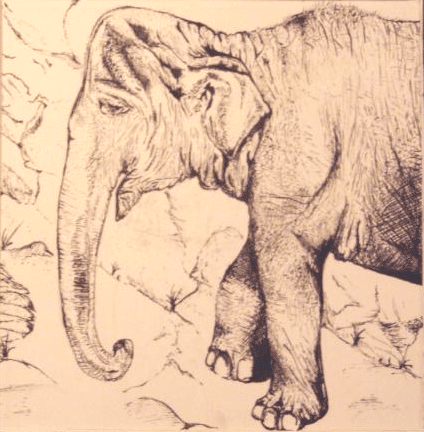 This is a pen and ink, well actually we had to use a small sharpened twig which proved to be quite difficult.