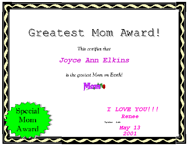 This page made with love for my mother, May 13, 2001, by Renee'.