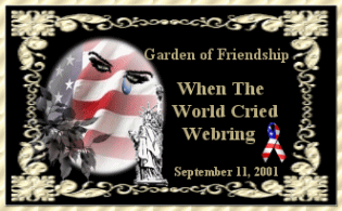 Welcome to my Patriotic and September 11, 2001 Webring page. These are all new webrings that I have joined since the tragedy on September 11th. I am very proud to say that I am an American. There is not a finer country in the world. Please view my tribute to those that lost their lives on this horrible day in history. My tribute pages are here.