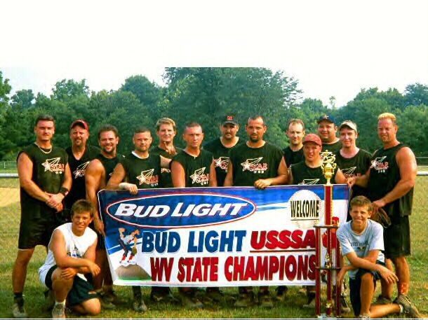 In early August, the local softball team "Clarksburg Express" captured its first state championship in USSSA Men's Slow-Pitch softball. The team defeated Parkersburg hometown favorite Schobb's by a score of 16-13. Eric Post, head coach of the Blue Blazers, is in the bottom left.