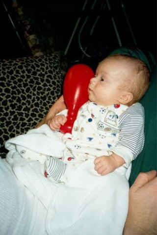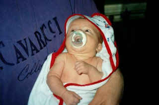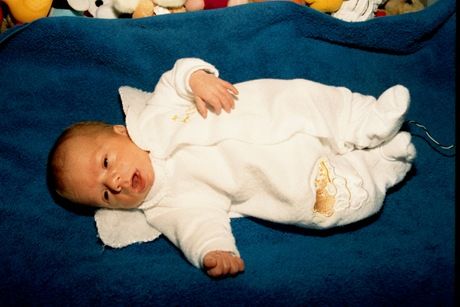 Little Luke is growing so very quickly. He now weighs 9 lbs and is 21 1/2 inches long. Julie says that Luke is starting to smile and make little baby noises. Bobby says he eats all the time and they haven't had a whole night of sleep in a long time. The pediatrician says that Luke is "doing great." After starting out at 3 lbs 13ozs. and 17 1/4 inches long, Luke has definitely come along way. As of this update (April 5, 2001) Luke is 3 1/2 months old. |