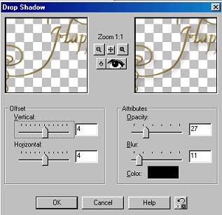 9. Deselect. Next go to effects, 3D effects, Drop Shadow. Use the settings shown below: