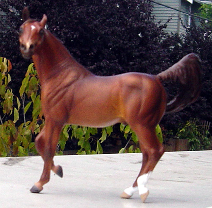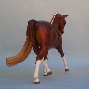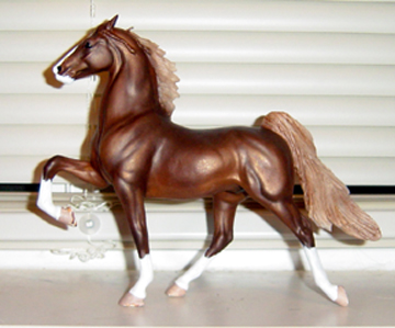 Saddlebred foal sculpted by Kathy Bogucki and painted to a dark liver chestnut with high stockings (2002). Collection of Courtney Kennedy.
