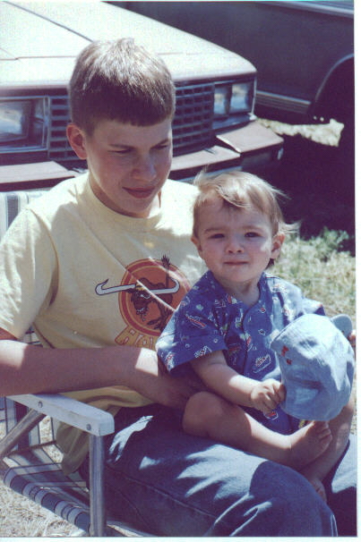 Wyatt and Uncle Jeremy at Grandma and Grandpa's property in Spray, Oregon.