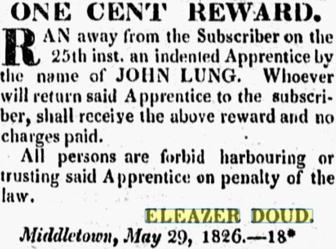 In an AD in 1814 Daniel referred Backsmithing work to Eleazer Doud. Eleazer was a relative but I could not find out the exact relationship. Daniel did not leave the business because the as AD below shows.