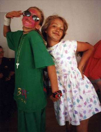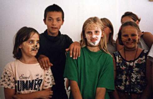 We gave them stuff to do... we played Games, made things, sang songs (especially 'God is in the House..' they loved the dance steps..), and told Bible stories. We also showed a video 'bout Jesus' death and ressurection. Pray for these kids... |
