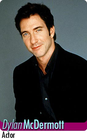 From People Mag. As criminal defense lawyer Bobby Donnell on ABC's The Practice, Dylan McDermott relies on his brooding stare to sway skeptical jurors. At home, however, it's the actor's sunnier side that wins over his wife of five years, actress Shiva Afshar, 31. "It's the little things when you're married that drive you mad," she says. "I love his dimples, and I love his front teeth, and they both show up when he smiles." McDermott, 38, got his smile unexpectedly. "I was in a car wreck and my teeth hit the dashboard," he says. "They went a little crooked." Of course, when you look like the 6-ft. McDermott, even physical imperfections seem like assets -- if only because it's so hard to believe there are any. "When people find out I'm on The Practice," says Marla Sokoloff, who plays Lucy, the firm's receptionist, "the first thing out of their mouths is, 'Is Dylan McDermott as good-looking in person as he is on TV?' " Her verdict? "He has the most beautiful eyes you've ever seen. And if you think they're beautiful on TV, it's nothing compared to what they look like in person!" Buried within those deep blue eyes, though, is deep pain: When McDermott was 5, his parents separated; shortly after, his 20-year-old mother, Diane, died from an accidental gunshot wound. "It shapes you forever," he told Esquire in March, "and you don't get over it." Cared for as a boy in Waterbury, Conn., by his maternal grandmother, the teenage McDermott moved to Manhattan to live with his father, Richard, 56, a bar owner, and his wife at the time, playwright Eve Ensler, 46 (The Vagina Monologues), who legally adopted him. There, McDermott enrolled in acting classes and later majored in drama at Fordham University. Now living in Santa Monica -- and a father to 4-year-old daughter Colette -- McDermott is setting aside his suits for spurs to star in the post-Civil War drama Texas Rangers, due out in August. His Lone Star turn may be a perfect fit for what Sokoloff calls "that whole chiseled look he's got going," but wife Afshar insists it isn't a case of typecasting. "He looks really rugged and masculine," she says, "but inside he's a soft poet."