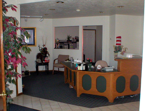 The first thing you see when you come to the studio located on 40 Shoshone in Green River would of course be the lobby. Our awards for best station are just off the right side of the picture. Towards the rear part of the lobby sits the person who works on the website (theradionetwork.net) and various other things. If you were to walk back to the right you would see the room where the studio logs get created and this is how we program the computers almost every day.