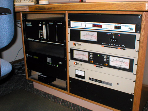 Starting from the left (again) is the Digilink (III) computer and below it is the Jones Radio Network receiver (see sat dishes later). On the right side is the tower data controller(bottom) followed by the modulation control.