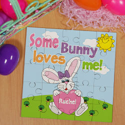 Some Bunny Loves Her Personalized Sqaure Shaped Easter Wood Jig Saw Puzzle