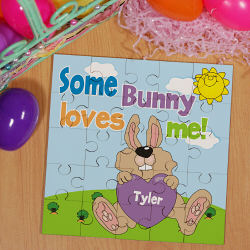 Some Bunny Loves Him Personalized Square Shaped Easter Wood Jig Saw Puzzle