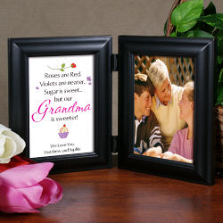 Personalized Grandma Picture Frame - Is Sweet... Black Wood Bi-Fold Frame