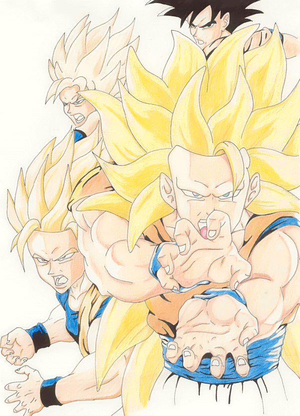 Goku,Super Saiya-jin, SSJ2, and SSJ3 doing a Kamehameha Jason Tomic