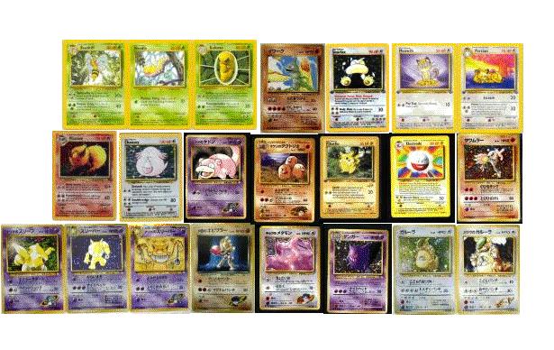 Holos Aerodactyl Articuno Ditto Dragonite Gengar Haunter Hitmonlee Hypno Lapras Kabutops Magnaton Moltres Muk Riachu Rares Aerodactyl Articuno Ditto Dragonite Gengar Haunter Hitmonlee Hypno Lapras Kabutops Magnaton Moltres Muk Riachu Uncommons Arbok Closter Gastly Golbat Golduck Golem Gravler Kingler Magmar Omastar Sandslash Seadra Slowbro Tentacruel Weezing Commons Ekans Geodude Grimer Horsea Kabuto Krabby Omanyte Psyduck Shelder Slowpoke Tentacool Zubat Trainers Mr .Fuji Energy Search Gambler Recycle Mysterious Fossil Thsi is a origanal list it is ©Legenday Pokemon Site 1999