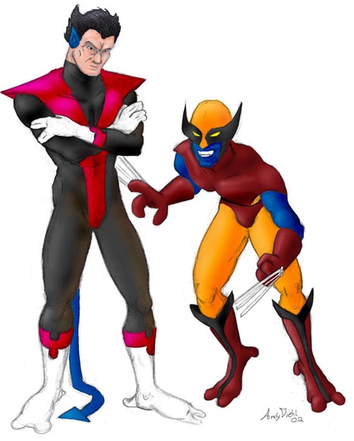 This is for the Holloween challenge over at Nightscrawlers. I had some other ideas, like all the X-Men dressed as Nightcrawler under a banner that said "Dress like your favorite teammate," Nightcrawler is dressed as Storm and Wolverine looks hurt. Sorry if it takes a while to load. Please be patient.