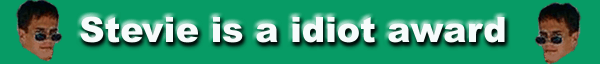 Andy Nouraee <candidate@andy2000.org> - He thought I was lying to him about finding his web page "visually interesting and to have above average content." In his next message he denies calling me a liar and calls the Stevie's Funtime Site "stunningly unfunny and uninteresting." I wrote back apologizing and actually removed him from the Special Award page. He wrote back calling me "stupid" and awarded me the: