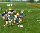 | Figure 5 The LBs contain the outside run. Continue lateral pursuit with the DT, letting the computer defenders attempt to wrap up the HB. NOTE: In situations where it is evident the HB will escape wide, take the closest player and dive (square). |