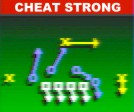 Figure 1 The 4-4 Cheat Strong. --Linemen slant to the strong side. --LBs rotate to the strong side, SLB blitzing. --LCB stays home, defends in a short zone. --SS rotates to assist in pursuit. --WLBs rotate covering the middle. |