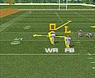 | In Figure 1 the default WR is out wide with a FB replacing the 1st string TE. This should be the short side of the field (if you not centered between the hashes). Use (R1) if you need to flip the play at the play call screen to get the overload on the strong side. |