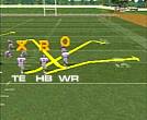 | In Figure 3 the HB is the 1st option. The pass must be blind and immediate. Make this instantly after snapping the ball. Four yards is almost a guarantee, and he has the big TE blocking for him for good Y.A.C.. This works best in a 3rd and 7, or even as a 2pt. conversion. |