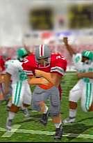 | Figure 3 The three good interior offensive linemen have already opened up a big hole pancaking someone in the process, with the WR ready to take on whoever is next. Be sure to push the speed button (X) when reaching the line of scrimmage. Make your cut (if needed) to the inside left at about a 15 degree angle. |