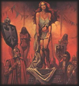 `Like this,' she responded, kneeling before me, lowering her head and lifting her arms, the wrists crossed. She laughed. `Now you must take me with you or slay me.'