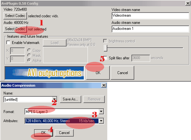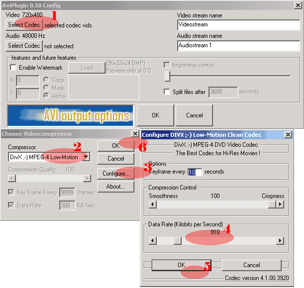 2: selecto "DivX ;-) MPEG-4 Low Motion"