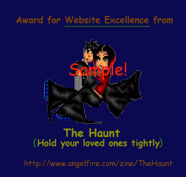 I would like to thank Kittaz for making these beautiful Haunted Awards for me! Visit her site: