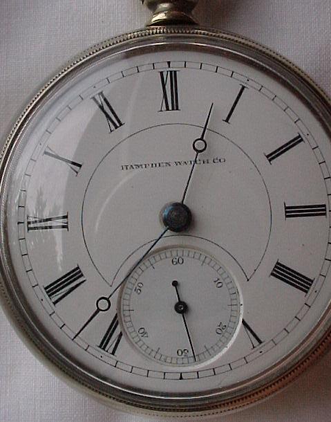 Click the watch to see a larger picture of it. This is a Hampden 17 Jewel movement in a silveroid 18 size, open face