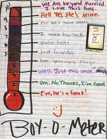 This is the Boy-O-Meter, this is how we rate boys. I know some of them are out of order,