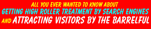 Web surfers absolutely love getting something for nothing. So, if you want your page to get the attention it deserves, you'll have to include plenty of stuff about f-r-e-e m-o-n-e-y and f-r-e-e p-r-i-z-e-s. Perhaps something like this: We've got free money and free prizes. We give away big cash prizes for free-- big money-- big cash-- big prizes. Win the free money and win the free prizes on the web page that has the big, big cash free money prizes. We want you to win the thousands, the millions, the billions. That's right, win $100,000! Win $1,000,000! Win $1,000,000,000! We have a million dollar winner every five minutes. We have a billion dollar winner every half hour. Join the party. Win your share of big cash money. Can you say trillion? We're working on it. Money, money, money: cash, lean green, loot. Plus we got the prizes. Spectacular prizes, prizes, prizes. Free computer, free car, free house, free trip to Mars. Hey, "sweepstakes", "giveaway", "contest", "jackpot": these are the words we live by. Remember big, big cash free money prizes are waiting for you at this web page. * Of Course, once you've got your spiel all set, you'll want to add words like "sweepstakes", "giveaway", "contest", "jackpot", "millions", "free", "big", and "prizes" to your keywords tag.