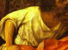 From Carpaccio's 1496 The Healing of the Madman. Its quite possible that one is a women's camacia and the other is a man's. The shorter of the two appears to have the hip slit typical of the man's camacia. As they both appear to have the box pleat, I am going to use the same pattern for the body of the men's camacia, as I did for the women's camacia. |