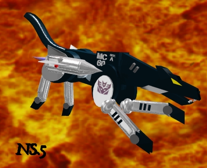 Profile: Ravage operates best when he operates alone. He's a creature of the night and carries out most of his murderous mischief at that time. Often the other Decepticons have no idea where he is, but they know he's up to no good, so they don't mind. He is easily the craftiest of his comrades and is quick to devise deadly new strategies to be used against the Autobots. He tends to remain aloof from the others, but his deeds command their respect. He is an exceptionally efficient war machine.