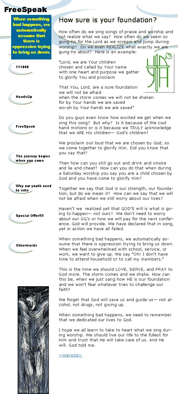 111800 | HeadsUp | FreeSpeak | The journey begins when you come HOME | Why our youth need to vote | Special Offer!!!! | Otherwords