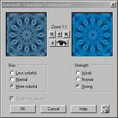 Now let's make it a bit brighter by going to "Effects", "Enhance Photo", "Automatic Saturation Enhancement", and set it to your preference. On mine, I used "Strong" and "More Colorful", but it's up to you, and a lot depends on your pattern colors. You may feel that they are bright enough already. Click ok.