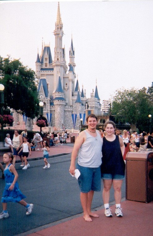This is Louis and I in front of the Magical Kingdom. We were just waiting for the show to begin right in front of it. We were also saving a bench to sit on to see the fireworks later.