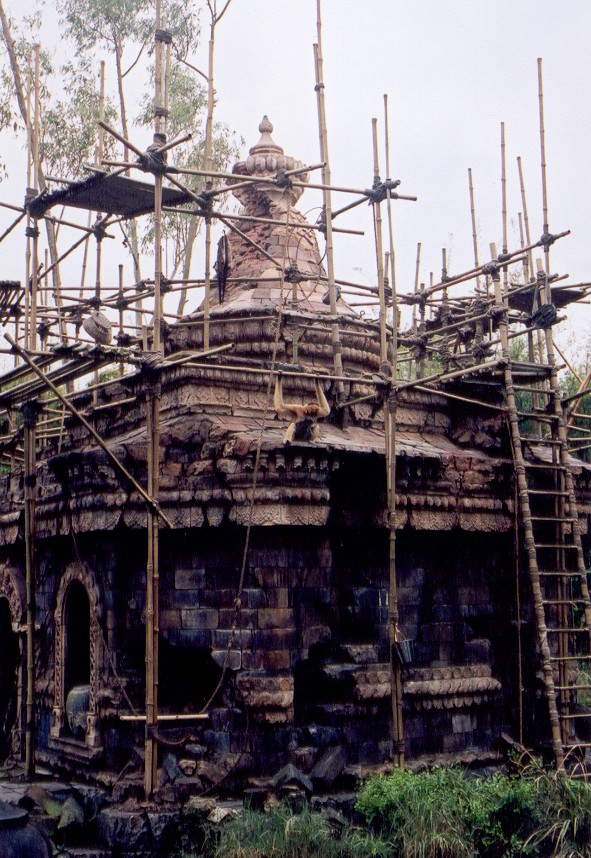 This is a picture of a section of the Japanese area. It represented a home being built and what it (supposively)looks like over there. If you look closely there is a monkey hanging from one of the bamboo poles.
