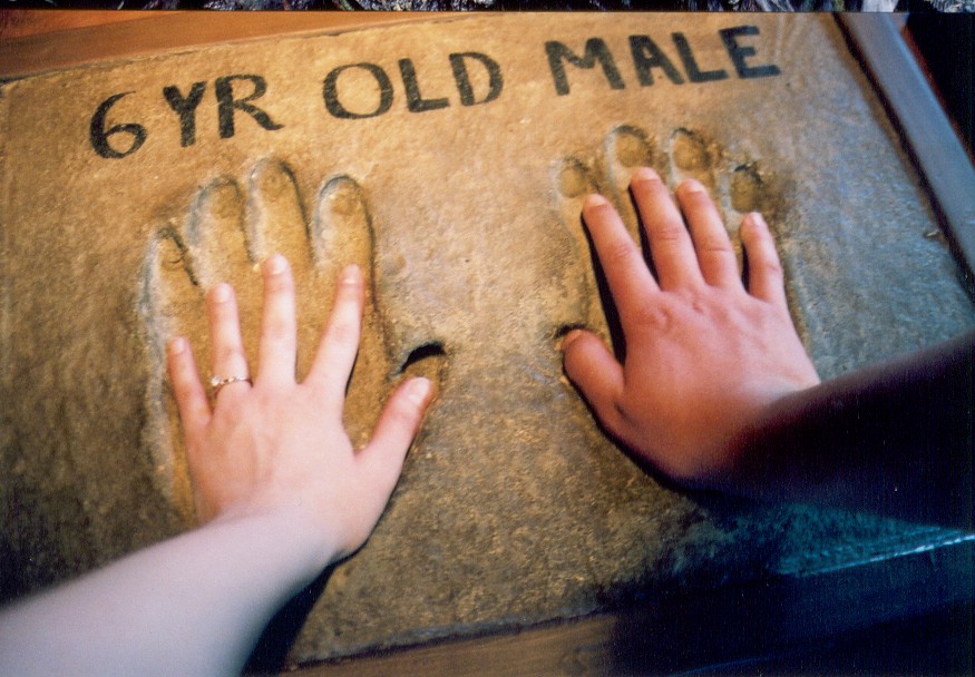 This was Louis and I's hand up against the mold of a 6 year old baby Gorilla....