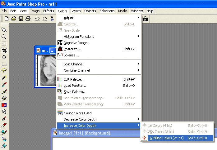 Step 3: Increase the color depth of your greyscale image back to 16 million colors/24 bit.