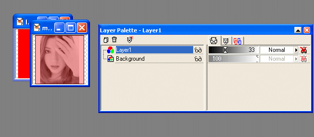 Step 5: Paste this color block as a new layer into your greyscaled image (Ctrl+C, Ctrl+L)