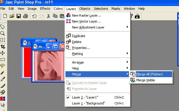 Step 8: Paste the merged image as a new selection (Ctrl+C, Ctrl+E) into the image created in Step 1 and move it all the way to the left edge of the image. Go to the Selections menu and choose "select none".