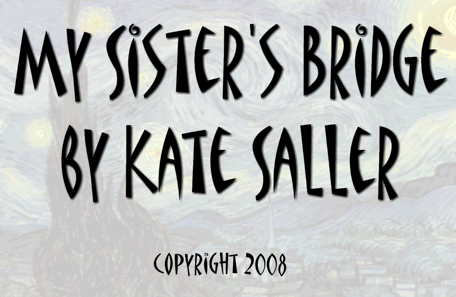 I crossed my sister's bridge today. I was on my way home from a conference in Iowa, and I was driving down the highway she usually takes to get to my home, when I missed the turn-off for the short-cut. I kept on and came suddenly upon the entrance to a bridge. The road cut sharply to the left, rose up quickly, and abruptly tipped me into a narrow lane honed by on-coming traffic on one side and bright green girders and rails on the other. It was a fairly ordinary bridge. Through the railing supports I caught glimpses of the river, tumbling over rocks and logs, as the sunlight hit my face in Morse Code through the ironwork above me. In seconds I was released onto open, shouldered highway again. It was only then that I realized I had crossed her bridge. I remembered then the look on her face when she had told me about it. It's so narrow, and high, and oh, how it sneaks up on you, she had said. She turned so white just at the telling that I quickly told her about the shortcut. The road is wide there, I told her, and the river is peaceful. You barely know you're on a bridge. She looked cross then, the way she does whenever I switch roles, suggesting she is the younger and I the older, wiser. Her face composed and she changed the subject to mothering. Her children are older than mine, so this is always safe ground for both of us. What is already past and assimilated for her is unknown for me. As soon as I realized where I was, I turned off onto a road paralleling the river and parked so that I could walk down to the water's edge and see the bridge. Now I am perched on a rock where I can dip my hand into the water that has just traveled under the bridge. When I look up past the cement support columns, I can see the ramp leading up to the bridge entrance across the river. I watch the cars for a while, wondering how so much terror could have descended upon my sister in that spot, when the faces I see now are merely the unconcerned masks of people expecting to follow the road and end up on my side of the river. I notice a sign I had missed when I was driving that says "No Vehicles Over 8 Feet Wide." Had she known how wide her car was? Do I? I watch for several minutes, but no-one is swerving suddenly off the road, leaping out with a tape-measure and assessing their ability to fit into the space ahead. How trusting we all are. If I had seen that sign and realized that this was the bridge my sister had crossed, I would have proceeded under the assumption that she had already determined that the bridge would accommodate our cars. Our father used to tease us about trust. My sister didn't trust anyone except herself, but I—he always said he'd have to get a shotgun when I started dating. One of our family’s favorite pieces of folklore revolved around trust, from a time before my memories began. It seems that one day, when she was four and I was two, we were at the community swimming pool and Mom was standing in water to her waist, trying to convince my sister to jump into her arms. Finally, exasperated with cajoling and explaining, Mom had shouted, “Just yell really loudly, ‘I trust my Mommy,’ and then close your eyes and jump.” Still, my sister teetered on the edge while, several yards away, at the very deepest part of the pool, I stepped up to the edge, shouted, “I trust my Mommy” and leapt into the twelve-foot water with no-one near to catch me. Five years after that incident, my sister and I were asked to be flower girls in a cousin's wedding. We were dressed in long, hoop-skirted taffeta dresses--hers was lavender, mine was mint green--and instructed to walk together down the aisle. My sister was to carry a basket of rose petals that she dropped on the carpet behind us, and I was to stay beside her, looking straight ahead, and carrying the pillow that held the wedding rings. We got through the rehearsals without a problem, but in the actual ceremony there was one point when I had to walk up the aisle first. When that time came, I simply couldn't move, in spite of the hissing and whispering of all of the adult members of the wedding party. Finally, one of them signaled to my sister to go ahead, and she began walking up the aisle. Without hesitating, I climbed out of the pew and followed her to the altar. I've never asked her how she felt about my devotion--it can't have been fun to always have me as her shadow. As we progressed through our teens, my following was less physically "tagging along" and more a statement of philosophy. I just needed to know where she was, or what she thought, in relation to what I planned to do, and then I could do it. Sitting on my rock at the river's edge, I peer up at the girders positioned against the sky, and think of long-ago math classes when we were taught how to calculate the height of something by knowing the length of its shadow and the angle of the sun's declination. I know that I continually measure myself against my sister--I just wish I knew the right formula for obtaining the answer. My sister was married before me, of course. I watched her agonize over all the wedding details for an entire summer while I was home from college. I had met her fiancé and had gotten to know him somewhat. In the way of two people who have shared space for so long, I knew without knowing that the event--the fact of marrying--was somehow obscuring the fact that she was planning a life with this man. Then, on a hot summer evening just before I returned to college, we were sitting in the living room discussing clothing styles. My sister pointed out how, even though we were both wearing flower-print cotton sleeveless dresses, the styles and colors were totally different. "Let's trade dresses," she cried suddenly, and before we knew it we were trying on each other's dresses and giggling as we had years before when we locked ourselves in our mother's closet and "played dress-up" with her clothes. We went laughing to the mirror in the hall and sobered immediately when